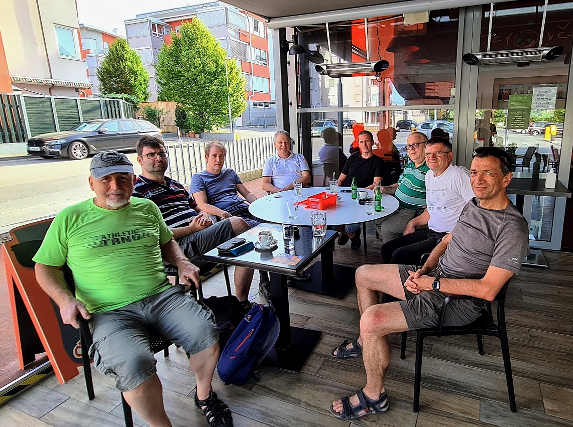 Ekipa na srečanju poleti 2021: Marjan Šemrl, Blaž Bratovič, Klemen Šivic, Aleš Borštnik, Niko Praznik, Danilo Korže, Anton Čopar, Marko Coklin